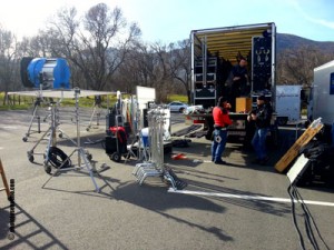 Cuando llegamos mi amigo y yo me sorprendió el despliegue de medios para la realización de las tomas. Si no me equivoqué en las cuentas había 33 personas incluyendo actores con el correspondiente atrezo, operarios de luz, sonido, cámaras, etc etc. y todo dirigido por un señor que hablaba en alemán por lo que sospecho que originalmente ese spot se verá en ese país y desconozco si se emitirá en España.